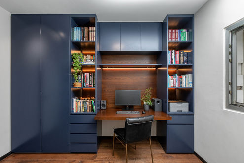 מקום: בית פרטי ברמת השרון \ סוג הפרויקט: שיפוץ חדרי רחצה, הסבת ממ"ד לחדר עבודה, יצירת חדר משפחה, פתרונות שונים בנגרות מותאמת אישית.